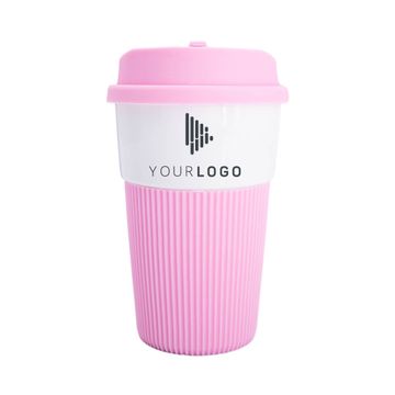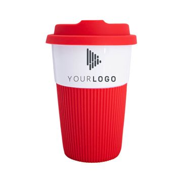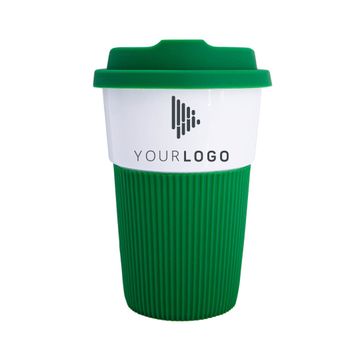 380ml Ceramic Color Mug with flexible, plastic lid and plastic grip. Can hold any temperature liquid (hot or cold)! All promotional drinkware items are delivered individually packaged in white cardboard boxes.