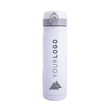 500ml Stainless Tumblr with a locking, push-button latching lid, great for active lifestyles or general use! Stainless steel interior and air-tight plastic mouthpiece protector ensures any temperature liquid (hot or cold) keeps it temperature for up to 24 hours. All promotional drinkware items are delivered individually packaged in white cardboard boxes.