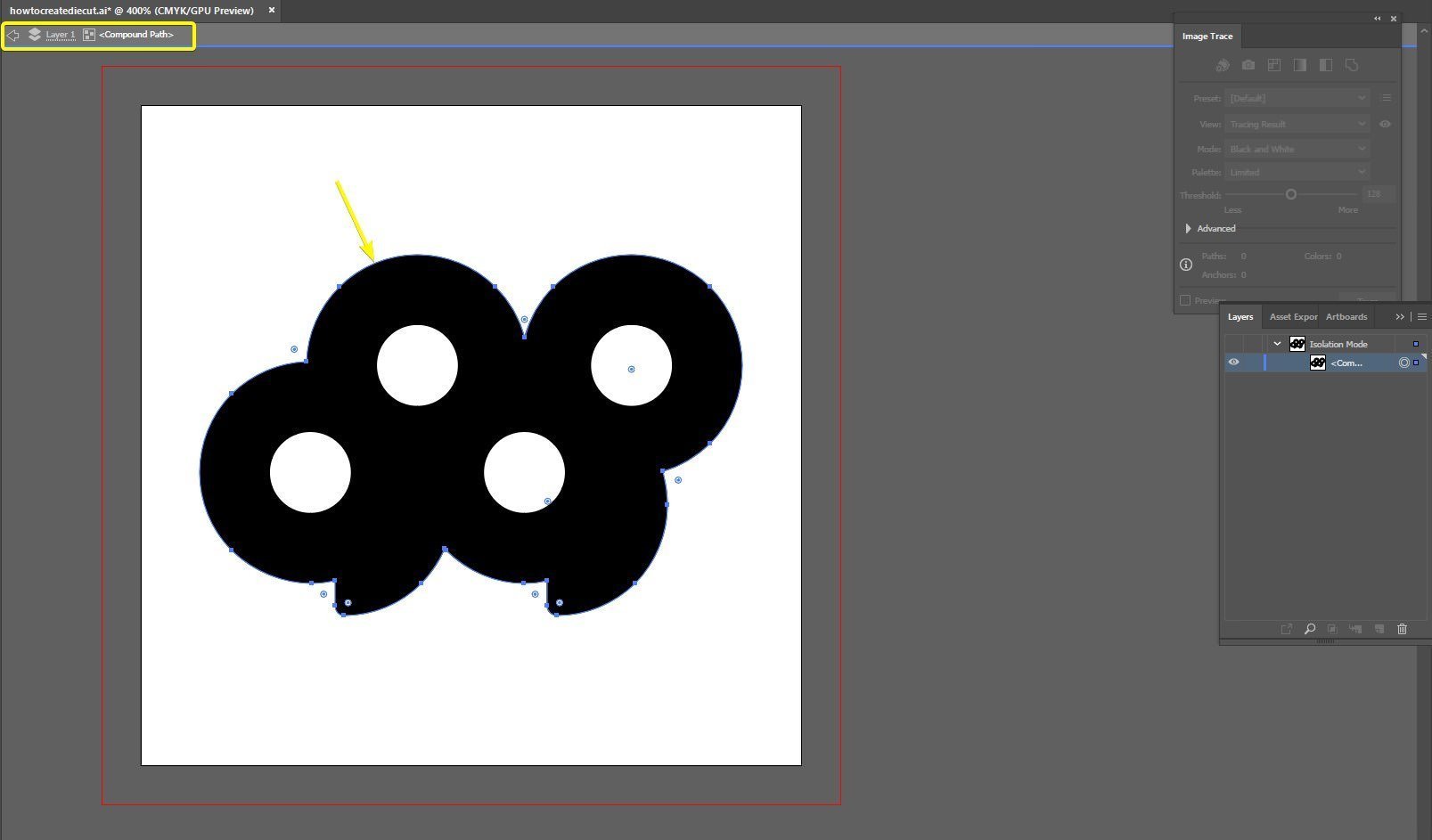 Step 4 - Click on the left arrow as circled below to unselect the black shape, or you can double-click the area outside of the Artboard to exit the editing mode