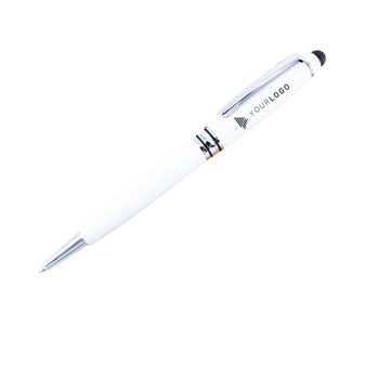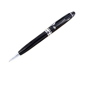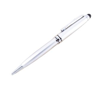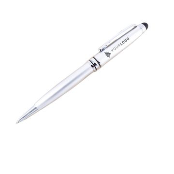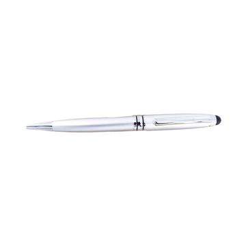 A business style pen. The pen is made by metal and also comes with touchscreen device. This pattern is available in 3 colors (silver, black, and white).