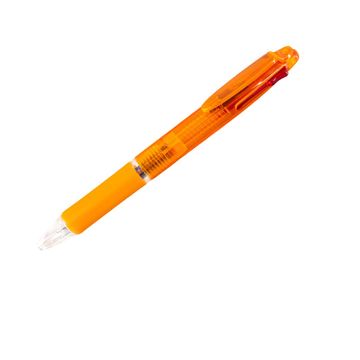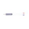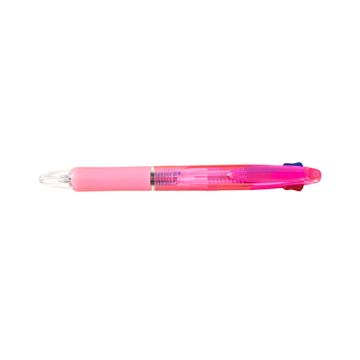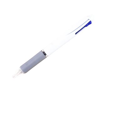 A combo ballpoint pen. It comes with 2 ink colors in one pen (blue and red); clicker to change color. This pen is available in 7 colors (blue, green, orange, pink, purple, red, and white)
