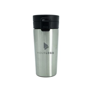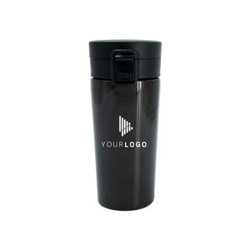 Premium 350ml Stainless Coffee Mug with locking, push-button latched lid. The twist on lid Includes a built-in stainless steel filter and easy-flow mouthpiece to ensure the highest quality experience! Stainless steel interior allows for any temperature liquid (hot or cold) to be held for up to 24 hours! All promotional drinkware items are delivered individually packaged in white cardboard boxes.