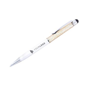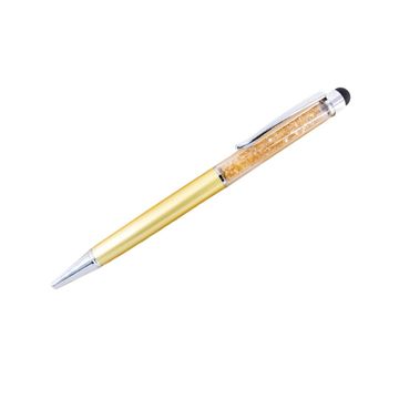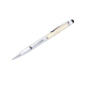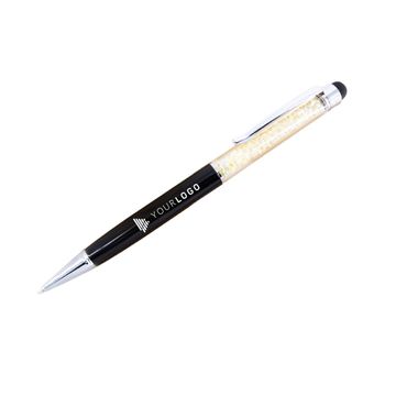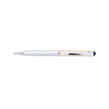 An elegance multi-tasking pen. It comes with normal ballpoint pen and touchscreen device on top of the pen. This pattern comes in four colors (black, gold, silver, and white).